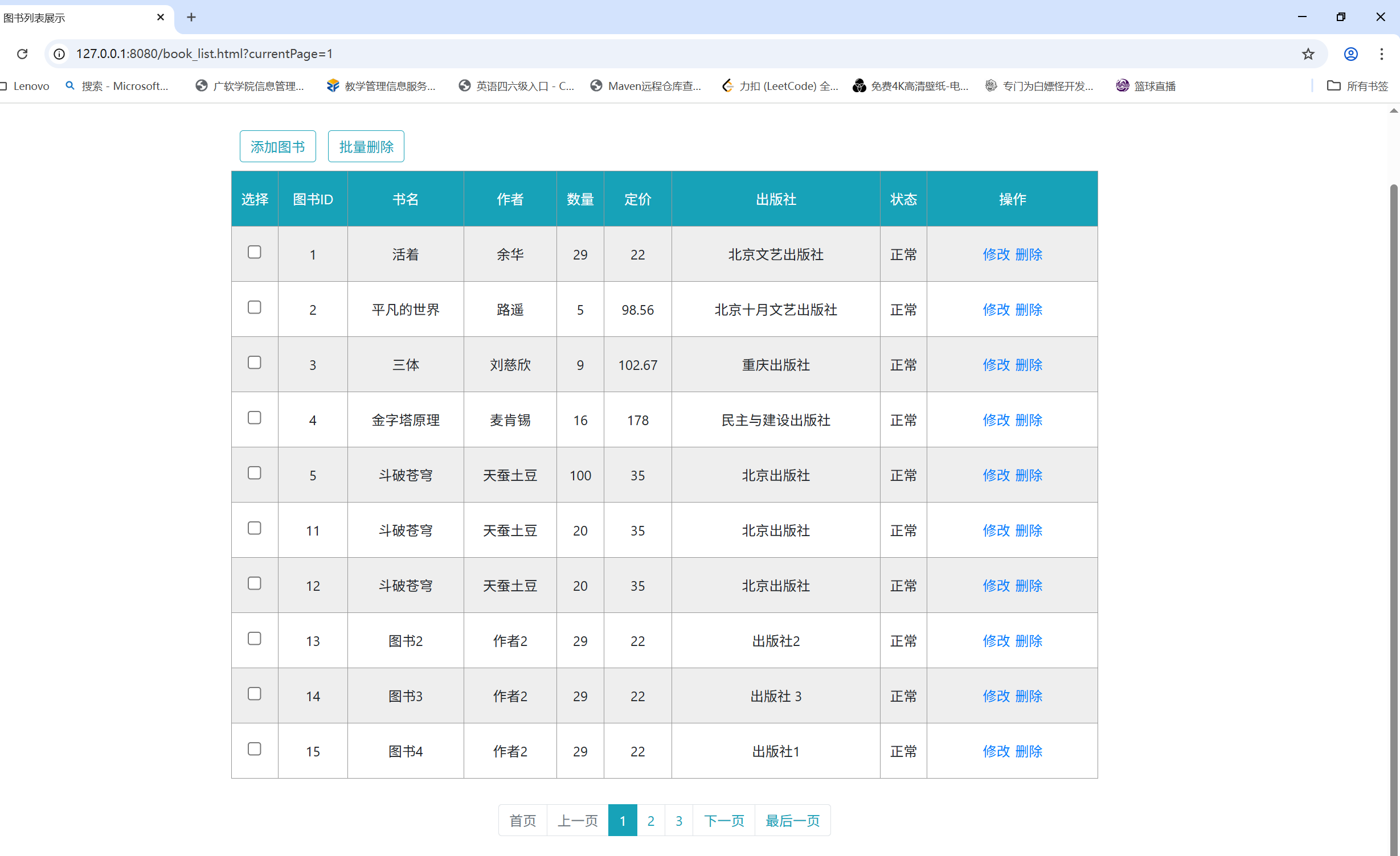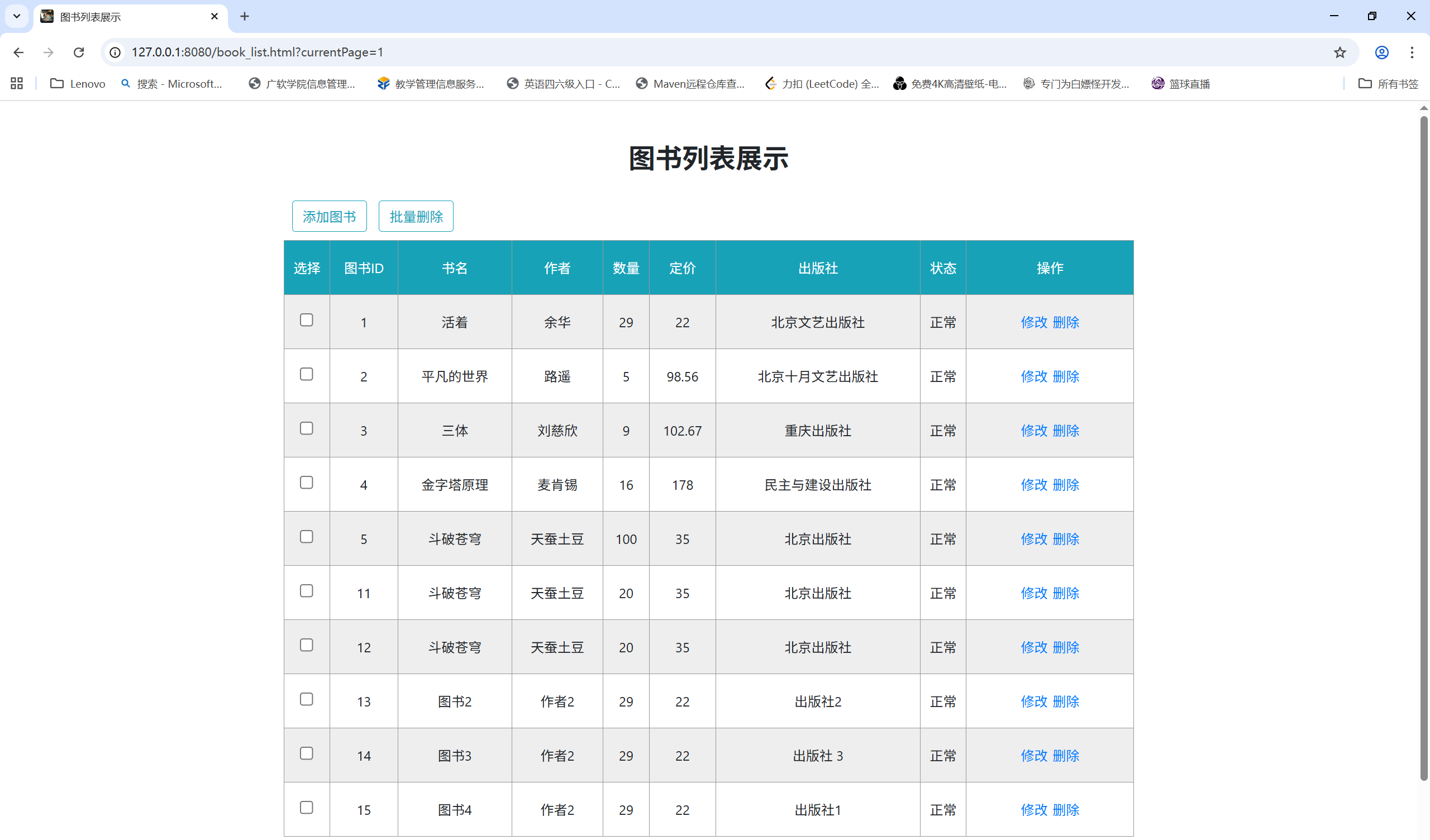 当前的图书列表,是模拟的数据,不是数据库的真实数据: