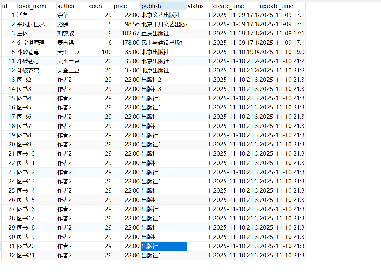 为了有更多数据,我直接使用 sql语句,往图书表中,添加多条数据: