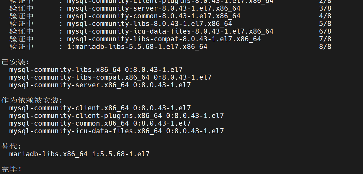 rpm -ivh mysql80-community-release-el7-9.noarch.rpm