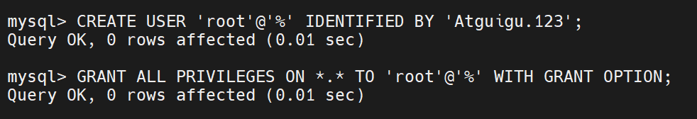 ALTER USER 'root'@'localhost' IDENTIFIED BY 'Atguigu.123';