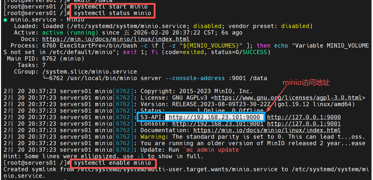 systemctl start minio