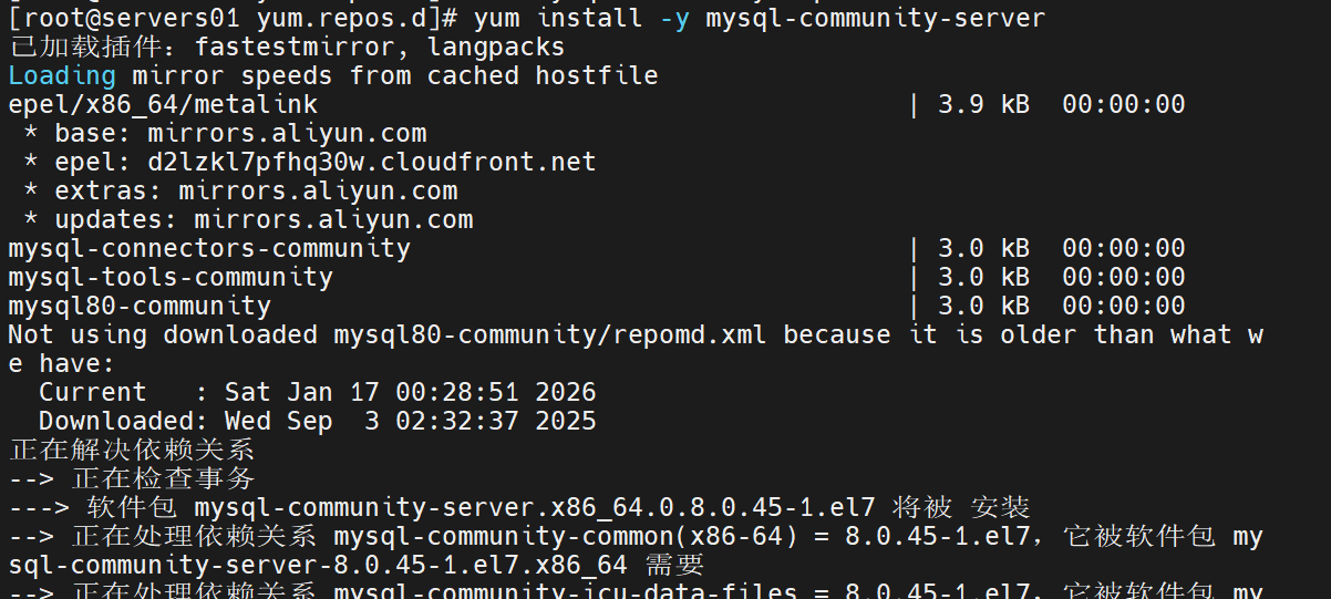 yum install -y mysql-community-server