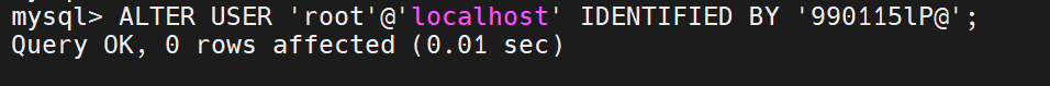 ALTER USER 'root'@'%' IDENTIFIED BY '990115lP@';
