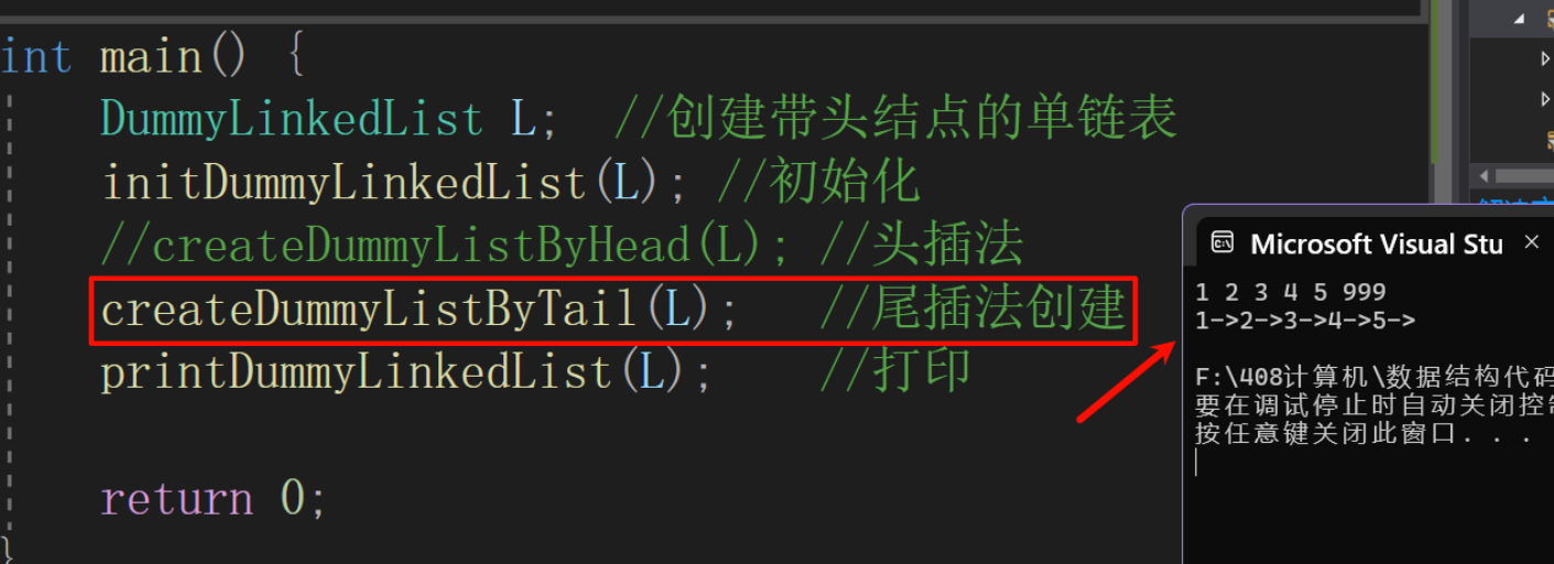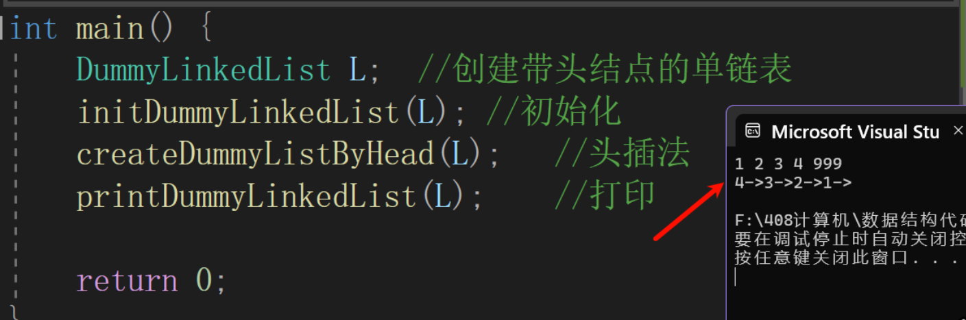 (3)头插法创建单链表