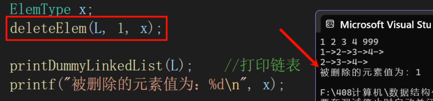 deleteElem(L, 5, x);