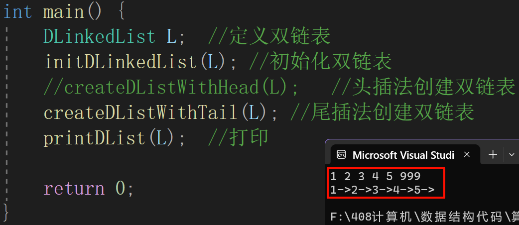 createDListWithTail(L); //尾插法创建双链表