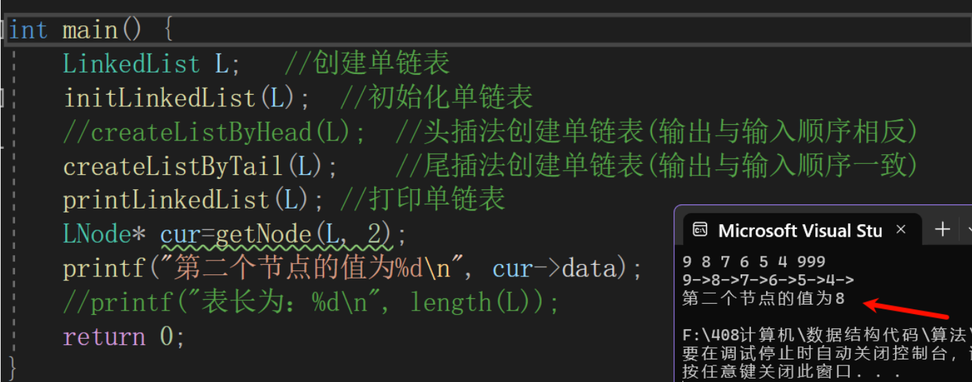 LNode* p = getNode(L, i); //返回第i个位置的节点