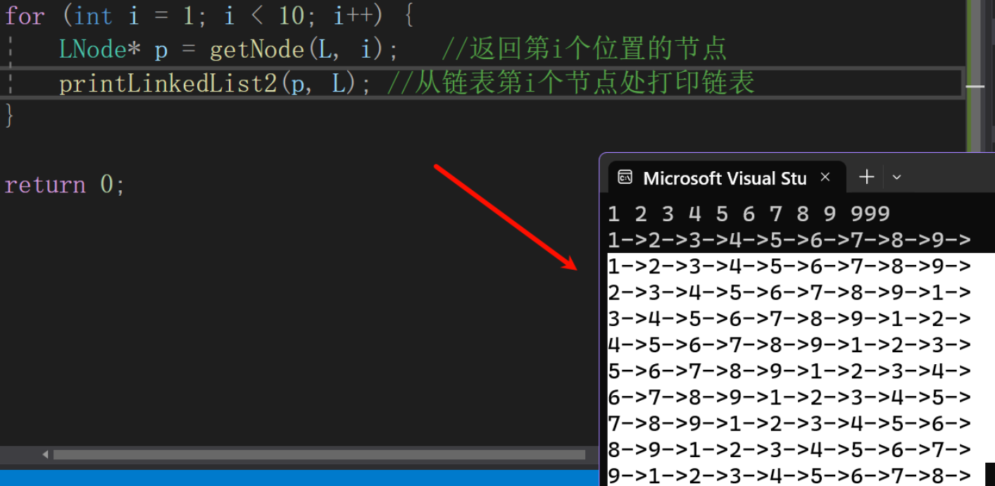 printLinkedList2(p, L); //从链表第i个节点处打印链表