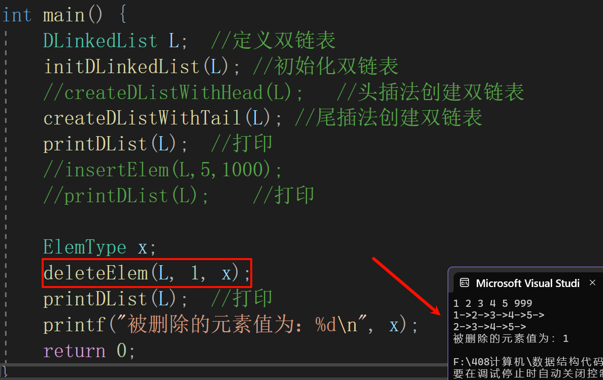 DNode* removed = getNode(L, pos); //找到第pos位置的结点