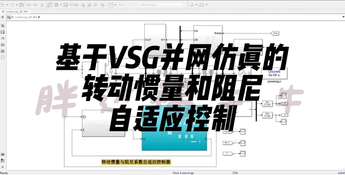 基于VSG并网仿真的转动惯量和阻尼自适应控制,是提升电力系统稳定性和可靠性的重要手段,通过不断优化主电路模型和自适应控制策略,我们能让电力系统在复杂多变的工况下运行得更加稳定高效。希望今天分享的这些内容,能给对这块感兴趣的朋友一些启发。