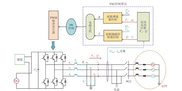 基于VSG并网仿真的转动惯量和阻尼自适应控制 仿真主电路为并网逆变器并网模型,通过引入旋转惯量和阻尼系数,实现VSG使得并网逆变器在面对系统扰动时发挥出惯性与阻尼的作用 结合同步发电机SG功角特性曲线和频率振荡曲线设计出旋转惯量和阻尼系数的自适应控制策略,该控制策略通过引入惯性环节以较好地匹配储能装置的动态特性