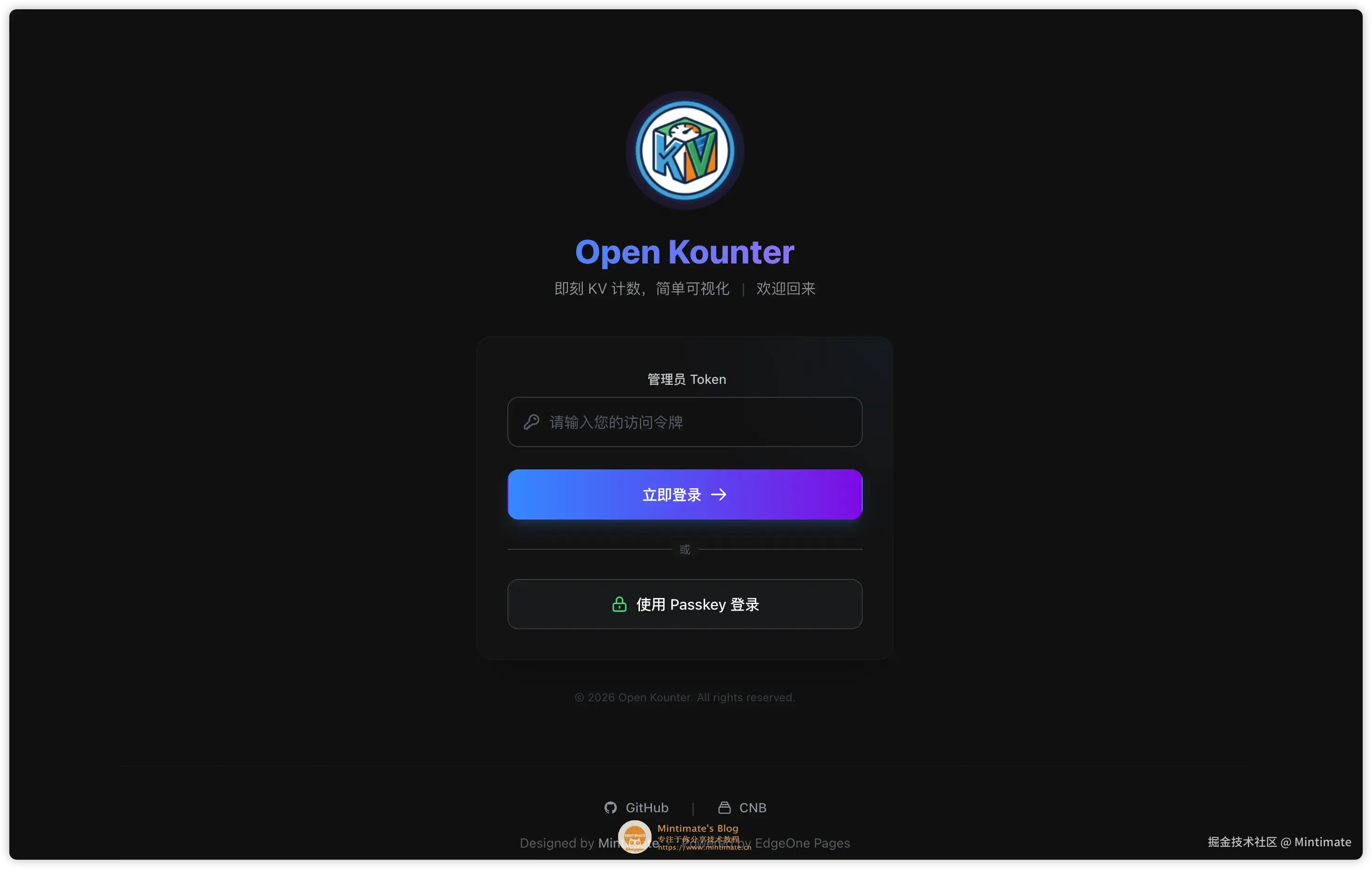 OpenKounter 不仅是一个工具,更是一种思路的展示:利用 Serverless 和边缘计算,我们可以用极低的成本构建高可用、高性能的应用。