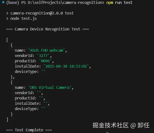 在 Electron 中使用摄像头时,经常需要区分「内置摄像头」和「外接摄像头」。但是 navigator.mediaDevices.enumerateDevices() 只提供 label、deviceId 等,不直接标明内置/外接。所以需要原生模块来判断是内置还是外接摄像头