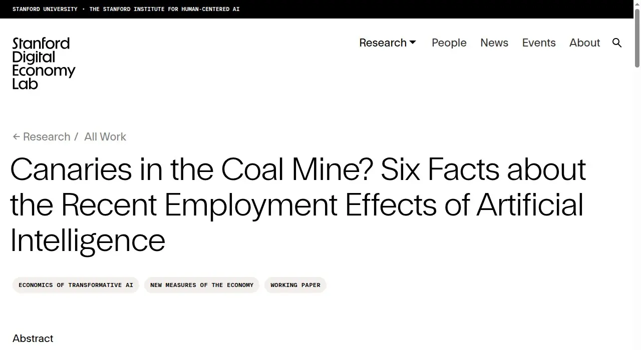 ▲ 斯坦福大学数字经济实验室:「煤矿里的金丝雀?AI就业影响的六个事实」