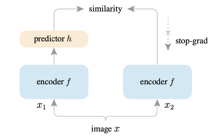 SimSiam主要解决自监督对比学习的崩溃解问题(不论输入什么,特征提取器都是相同的输出),并且不同于 SimCLR、MoCo 等依赖负样本对构建对比损失的方法,SimSiam 仅通过最小化同一图像两个增强视图的负余弦相似度进行学习,全程不引入负样本,也无需大批次数据或动量编码器。