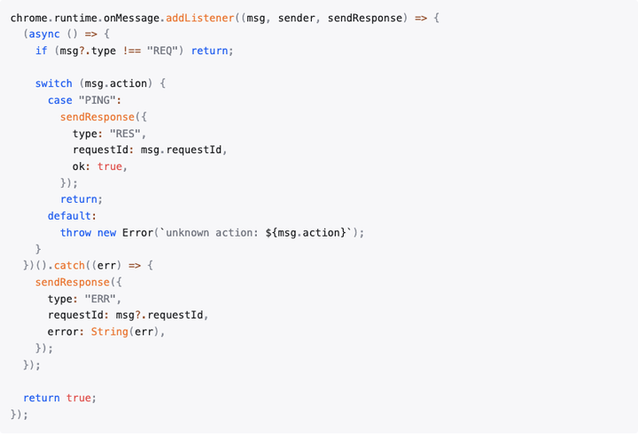 一个最小的 MV3 安全异步消息处理程序(适合作为模板使用):