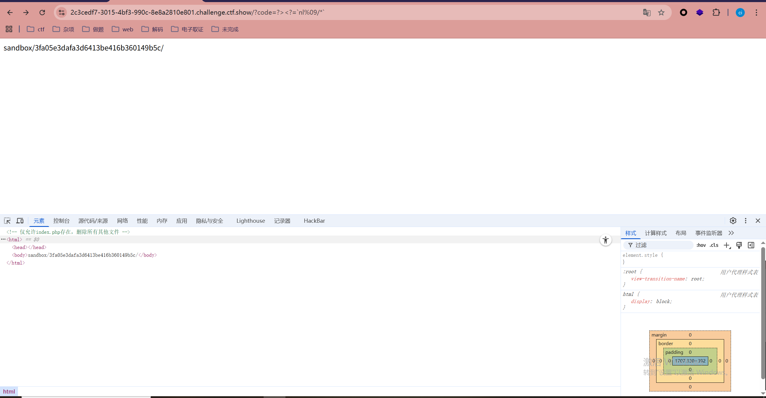 url1="http://60c9a571-7c97-4dc3-b54f-52e00a48340c.challenge.ctf.show/sandbox/3fa05e3dafa3d6413be416b360149b5c/"