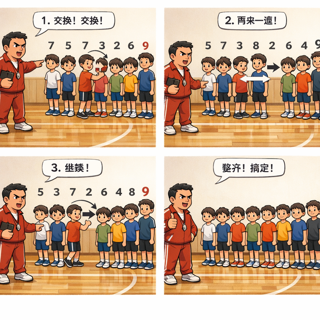 我们可以想象一下,传说中有位特别想早点下班的程序员,面对一串乱七八糟的数字,他实在不想去写那些复杂的递归或者构建什么二叉树。他想:"有没有一种办法,我不需要动脑子,只要像在菜市场排队一样,挨个看一遍,最后就能把顺序排好呢?"