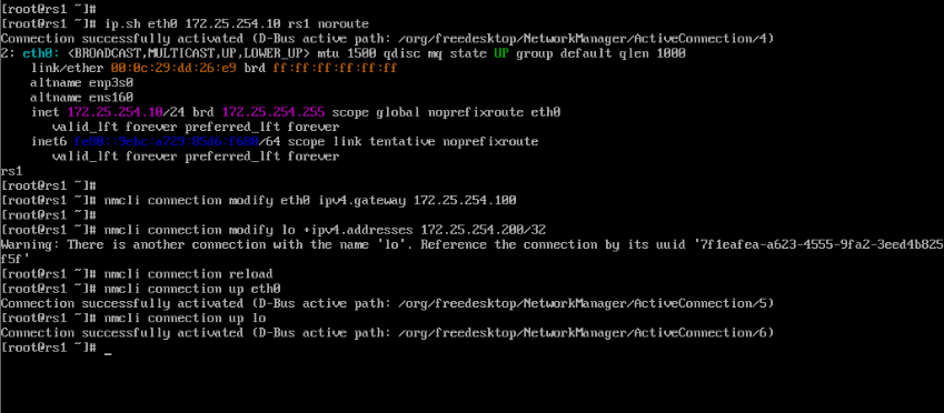 [root@rs1 ~]# nmcli connection modify lo +ipv4.addresses 172.25.254.200/32