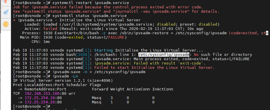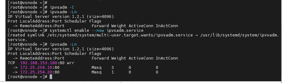 [root@vsnode ~]# systemctl restart ipvsadm.service