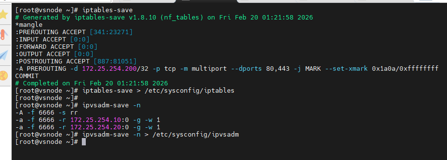 [root@vsnode ~]# ipvsadm-save -n > /etc/sysconfig/ipvsadm