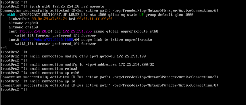 [root@rs2 ~]# nmcli connection modify lo +ipv4.addresses 172.25.254.200/32