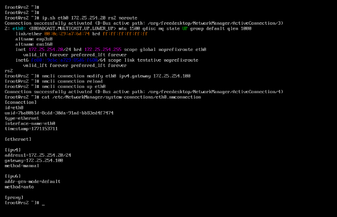 [root@vsnode ~]# nmcli connection modify eth0 ipv4.gateway 172.25.254.100