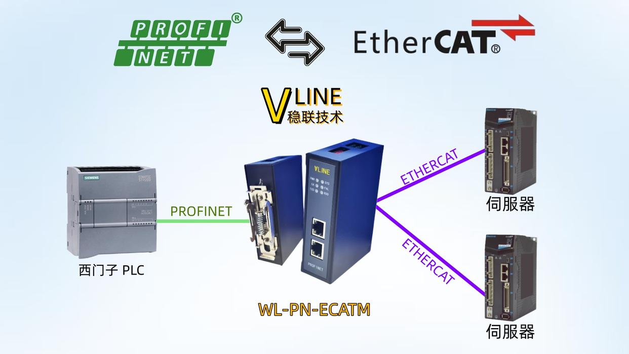 本案例聚焦于西门子1200PLC与B1E系列伺服驱动器的连接难题。在正常运行工况下,B1E系列伺服驱动器需具备对EtherCAT协议的支持能力,并作为EtherCAT从站运行;而监控系统所采用的西门子S7-1200系列PLC则支持PROFINET协议。鉴于两种协议存在不一致性,二者无法直接开展通讯以实现数据交互。因此,需借助第三方协议转换模块来实现不同协议间的数据交换。在本案例中,选用北京稳联技术生产的EtherCat转ProfiNet网关模块,以实现PLC与远程IO数据的整体交互。