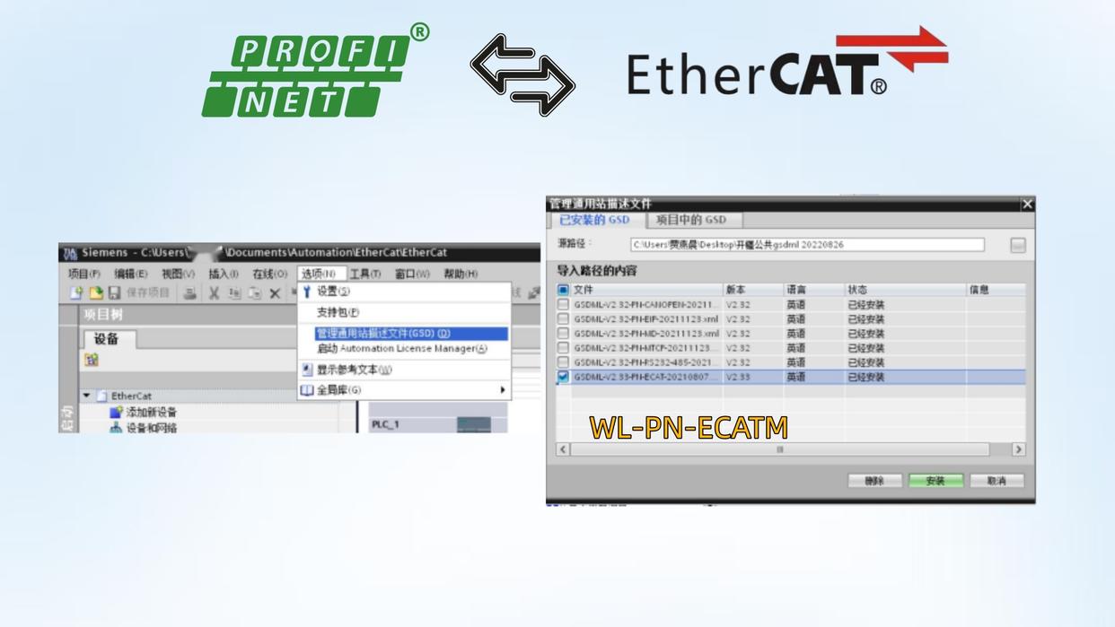 首先将EtherCAT转Profinet网关GSD文件导入西门子PLC组态软件中;找到GSD所在文件夹;