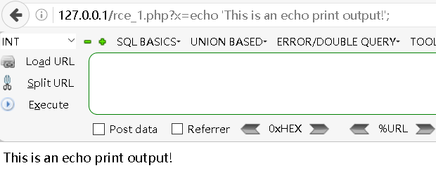 http://127.0.0.1/rce_1.php?x=echo 'This is an echo print output!';
