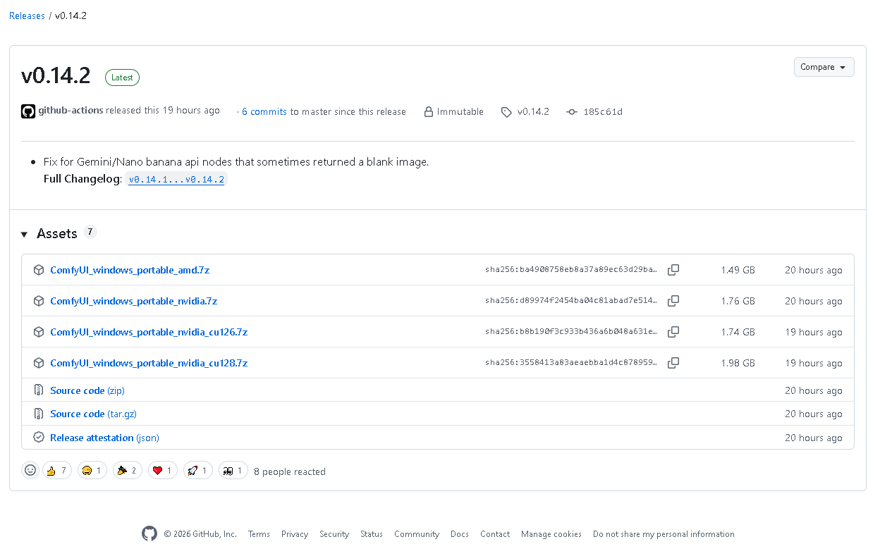 2026年2月18日,ComfyUI 官方发布了最新稳定版本 v0.14.2 。这一版本属于不可变版本(Immutable release),意味着除了版本标题和说明外,其他部分将不会再修改。相较前一版 v0.14.1,本次更新虽然是一个"小版本"迭代,但其影响却相当关键 ------ 它针对 Gemini/Nano banana API 节点在部分情况下返回空白图像的问题 进行了修复,同时引入了更智能的 MIME类型 glob 匹配机制,进一步提升了 ComfyUI 的图像识别与节点兼容能力。