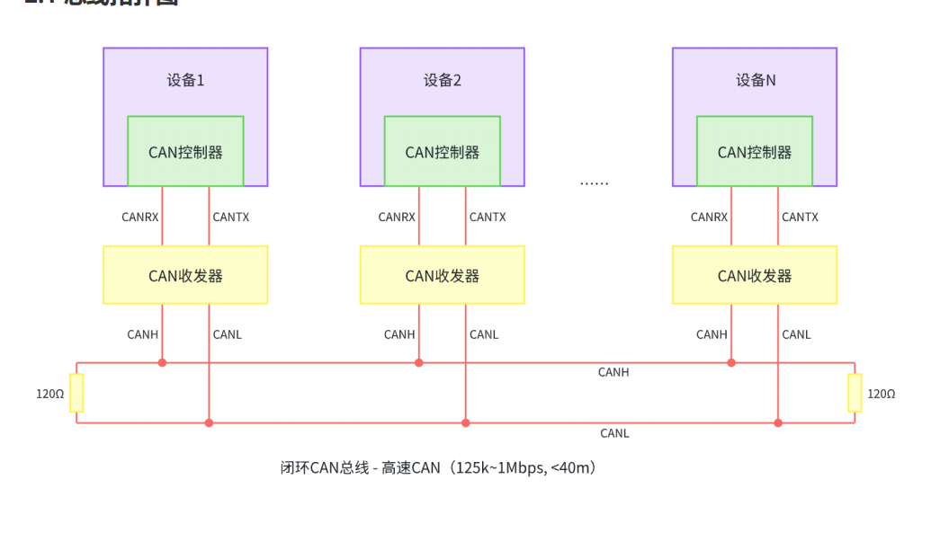• CAN控制器 :负责处理数据的收发和协议转换。