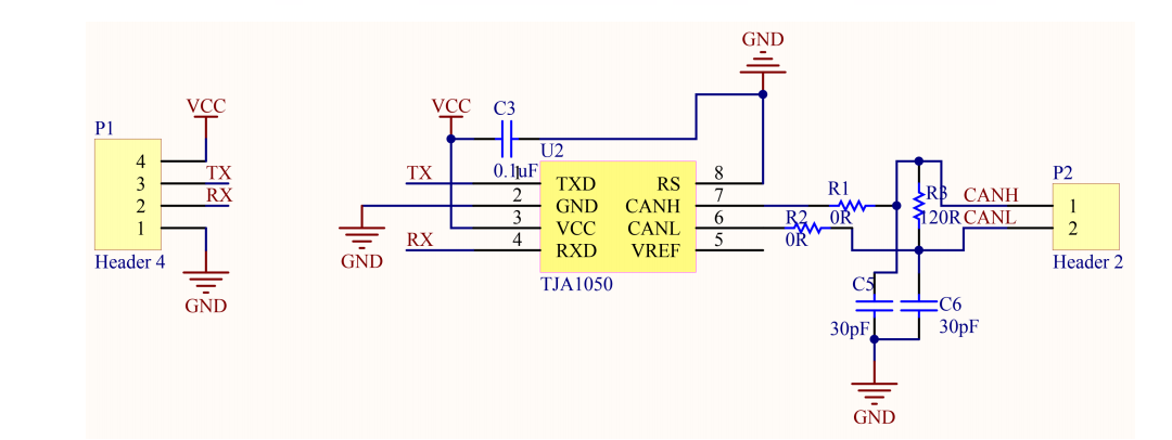 • 上图是一个高速CAN的收发器,其电路图里有120R终端电阻。