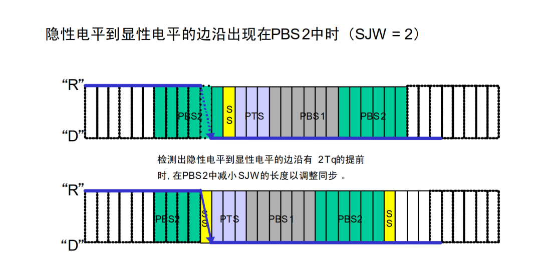 - 再同步时,PBS1和PBS2中增加或者减少的时间被称为"再同步补偿宽度(SJW)",其范围:1~4Tq。
