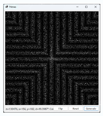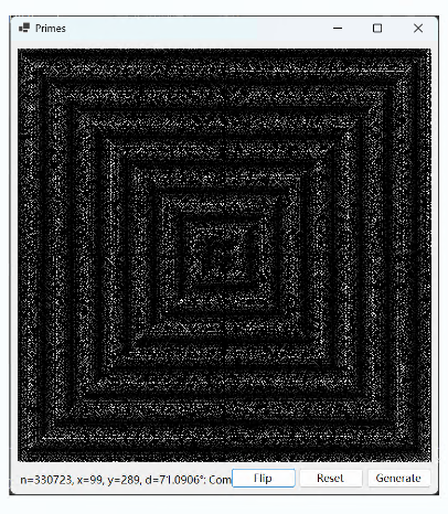 this.InfoLabel.Text = $"n={n}, x={dp.X}, y={dp.Y}, d={t:N4}°: {(b ? "Prime" : "Composite")}";