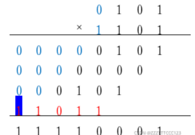 二进制乘法其实跟十进制的乘法运算的运算原理基本一样。