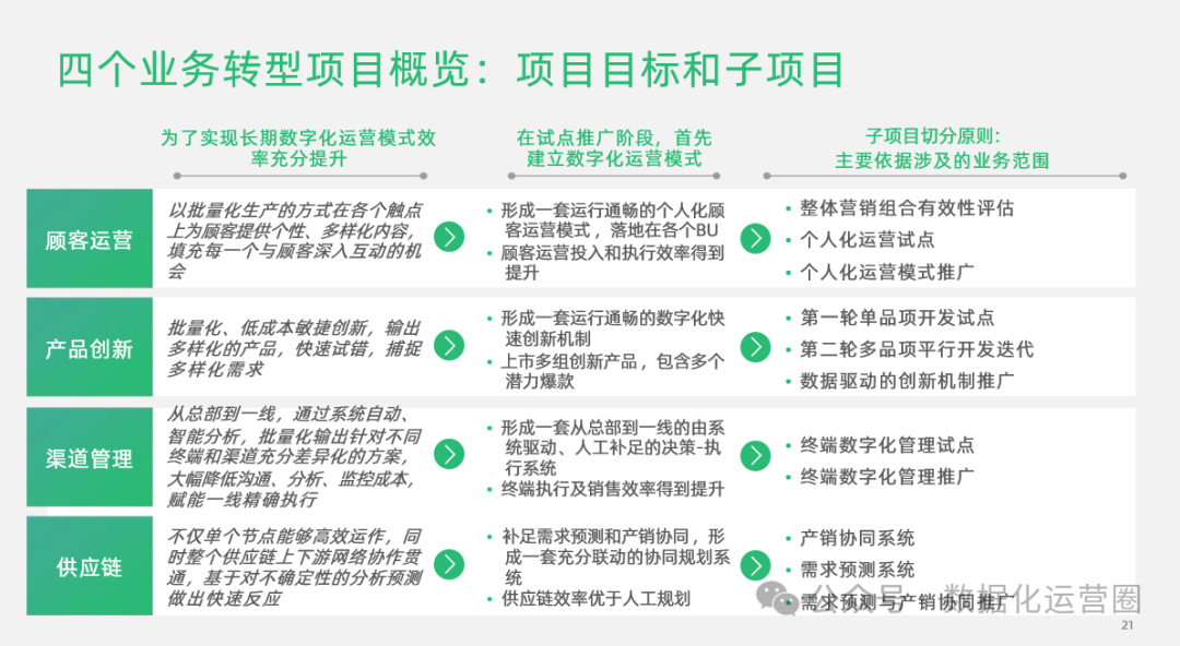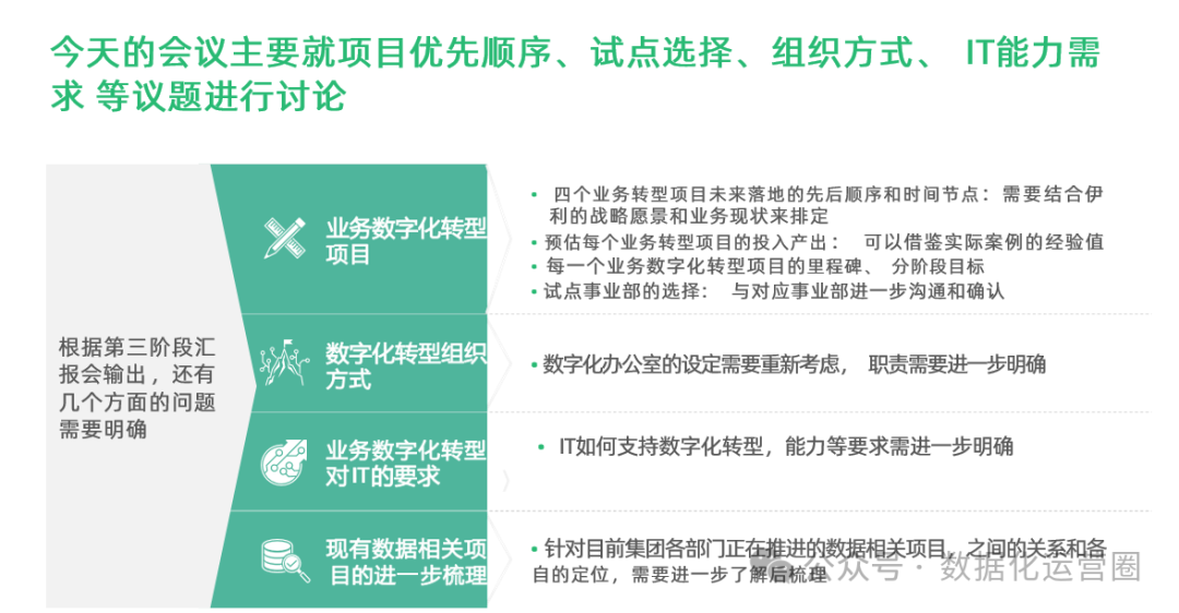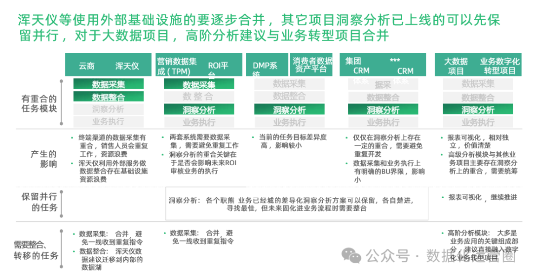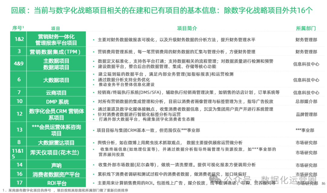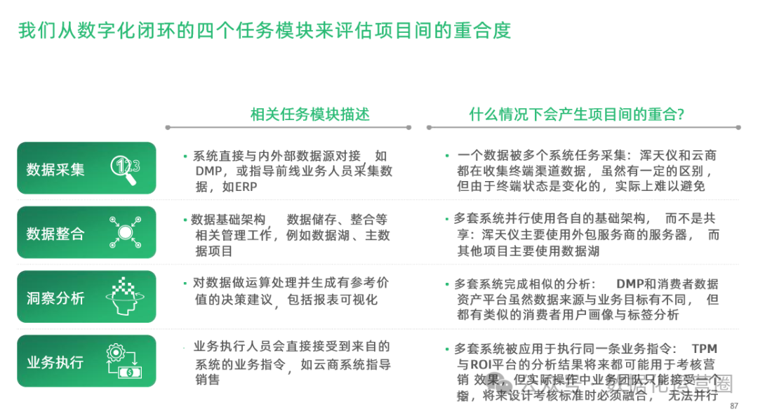 数字化转型工作梳理涉及对企业现有数字化项目的全面审视,包括评估项目间的重合度、优化数据采集和整合流程、确保业务执行的一致性,以及调整和规划新的数字化项目,旨在构建一个高效、协调的数字化生态系统,以支持企业的长期战略目标和业务增长。