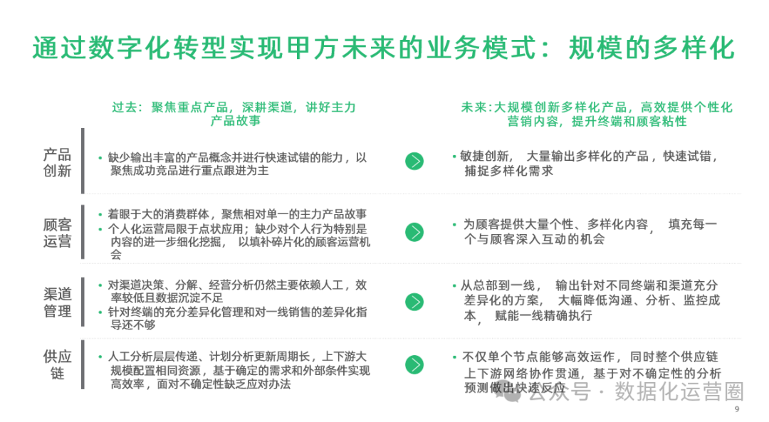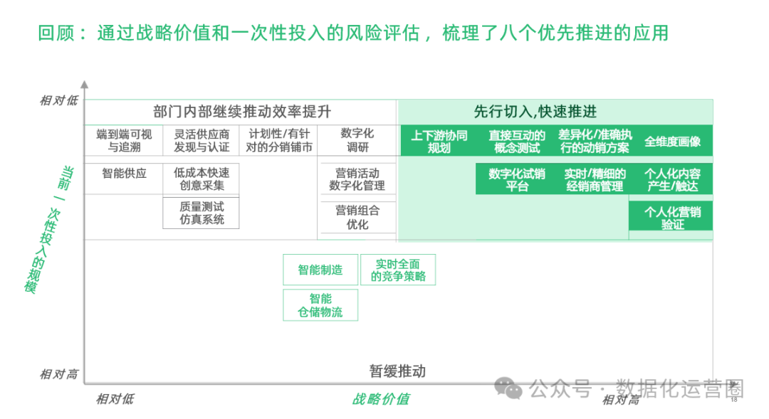 PPT文档涵盖了从数字化愿景、战略机会点共识、优先排序到具体实施步骤的详细规划,包括业务模式设计、数字化业务运行加速优化、组织保障和配套系统开发等多个方面,旨在帮助企业构建数字化蓝图,实现从传统制造向数字化、智能化的转型。