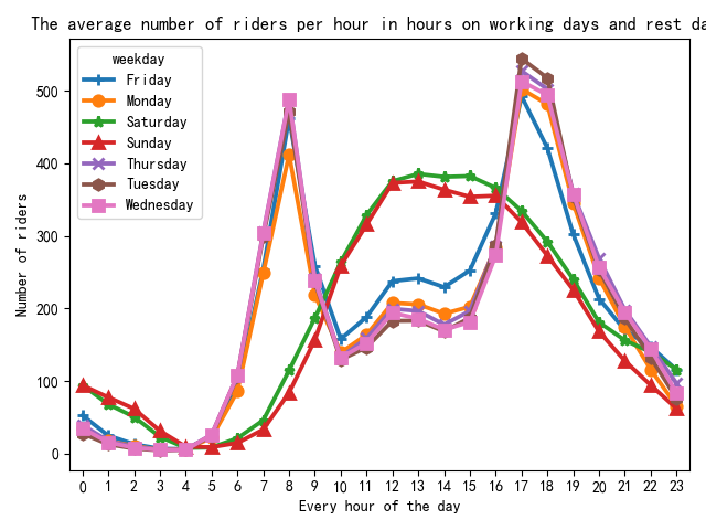 图7 工作日与休息天每小时骑行人数统