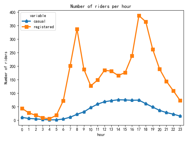 图15 注册与临时用户一天中每小时骑行人数图