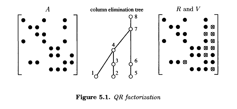 结构的紧上界。George、Liu 和 Ng [95] 描述了一种利用消去树中的路径来存储 Householder 矩阵