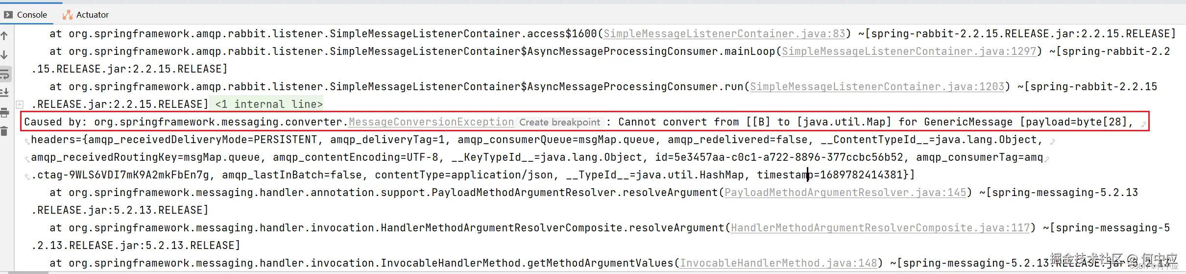 同样,接收方需要对消息的转换需要和发送方一致,如果发送方将消息转为成了json,接收方想正常接收,也需要使用自定义的JSON消息转化器