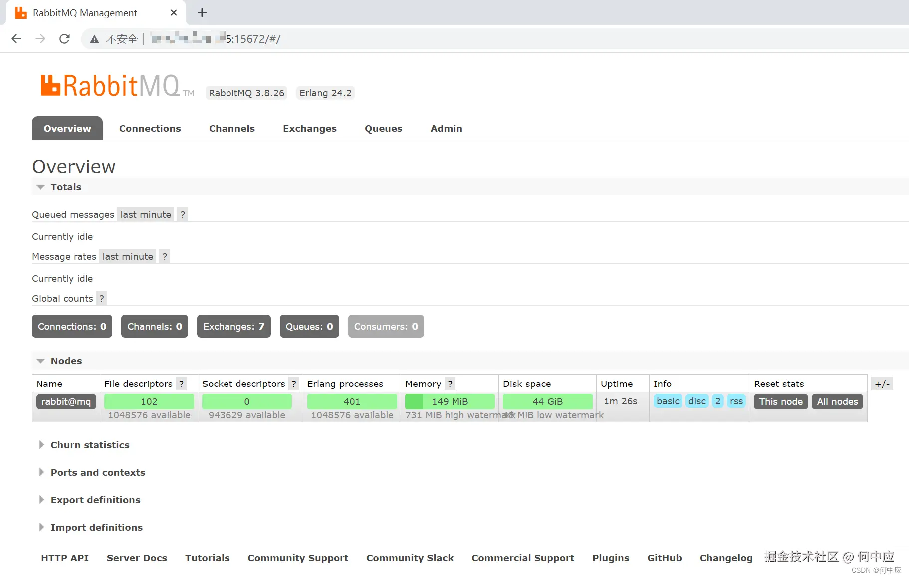 可打开浏览器,输入:IP:15672,进入RabbitMQ的管理平台