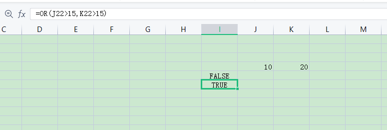 函数作用:在参数组中,任何一个参数逻辑值为TRUE,即返回TRUE;只有当所有参数逻辑值为FALSE,才返回FALSE。