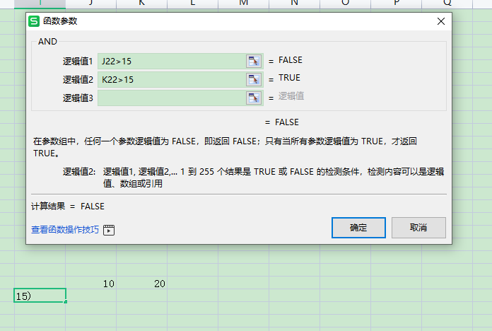 函数公式:AND(逻辑值1,逻辑值2,...)
