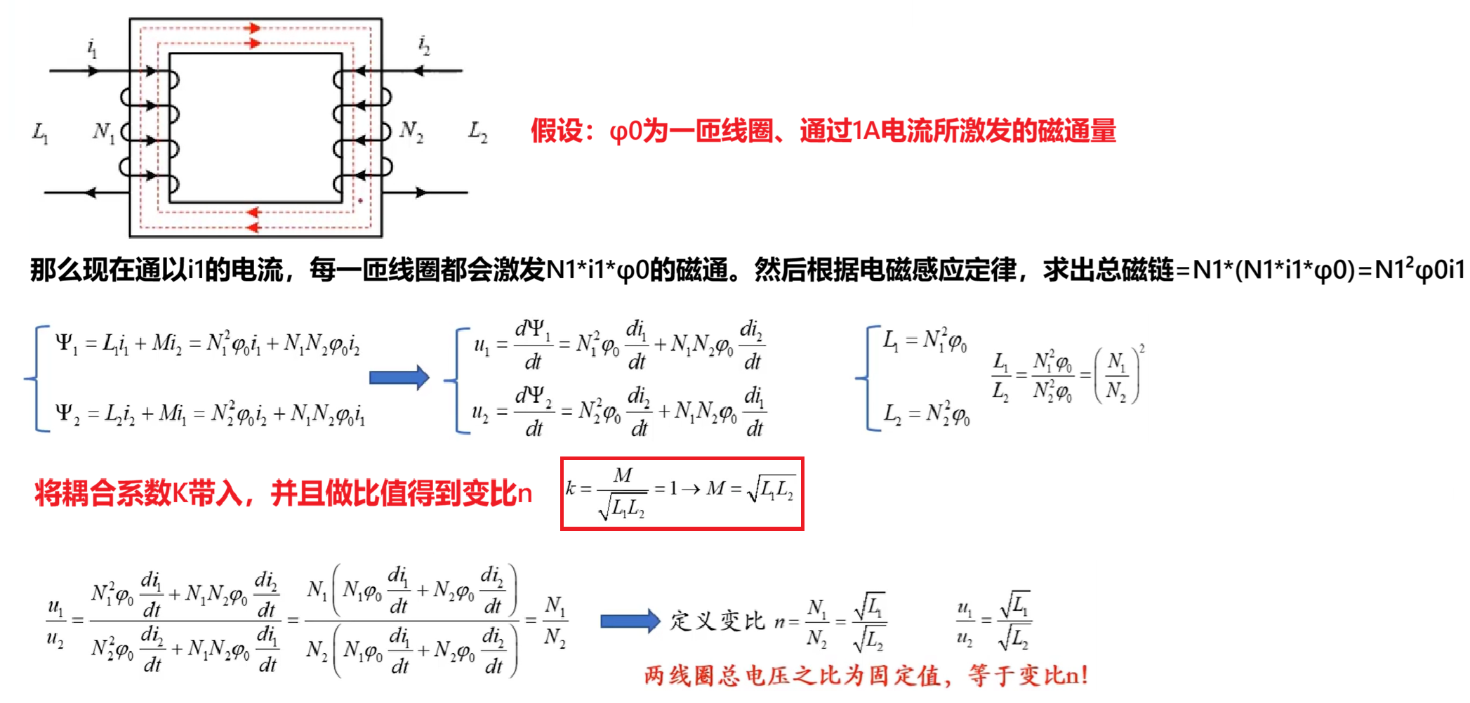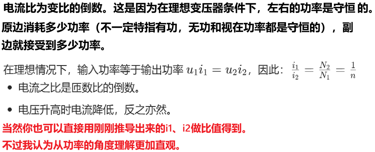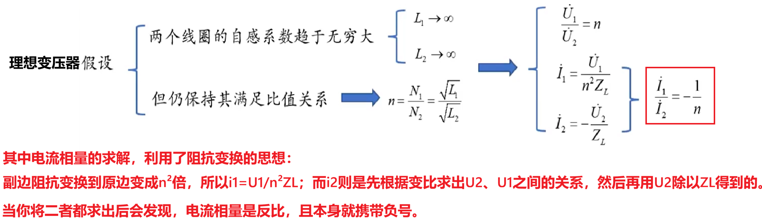 **最后在理想变压器部分又补充了电流比=变比的倒数这个结论。**是一个逐步完善逐步简化计算的过程。