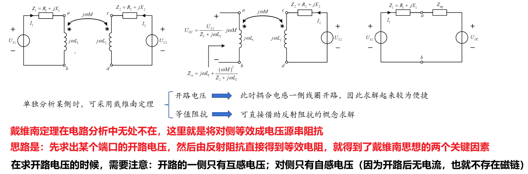 正是因为全耦合变压器是空心变压器的特殊形式,那么空心变压器的分析方法如:反射阻抗、戴维南等效变换等都可以直接套用。不过由于耦合系数K=1,所以会延伸出两个关键特点:变比固定、阻抗变换。