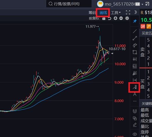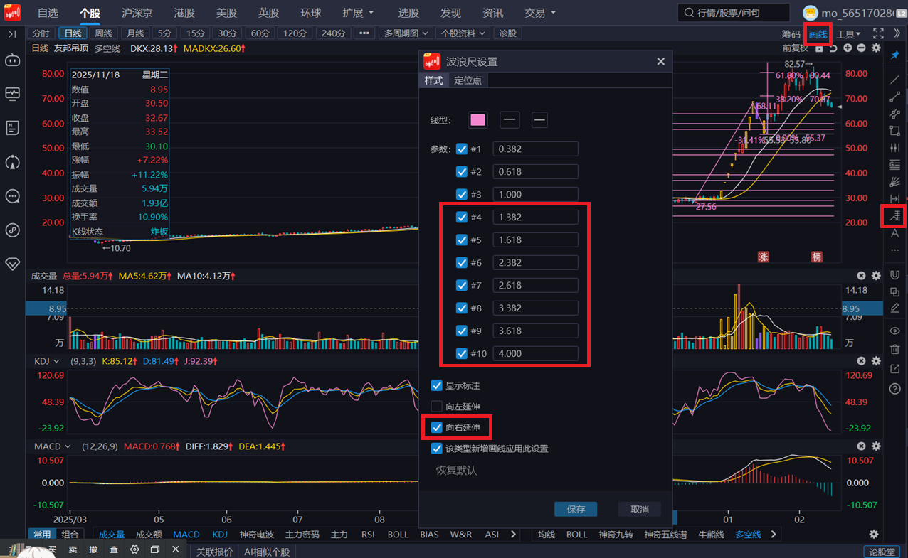 同花顺远航版使用斐波那契扩展